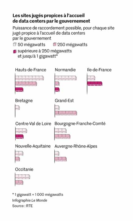 Sollicité par Mediapart, le gestionnaire du réseau français, RTE, se montre moins inquiet : « L’offre d’électricité bas carbone est aujourd’hui abondante en France, le système électrique français possède des marges et est prêt à accueillir les nouveaux usages. » Concernant les besoins des infrastructures du numérique, « nous sommes en train de réactualiser nos trajectoires en tenant compte des annonces sur l’IA mais aussi en tenant compte du fait que la montée en puissance des centres de données est souvent assez lente ».